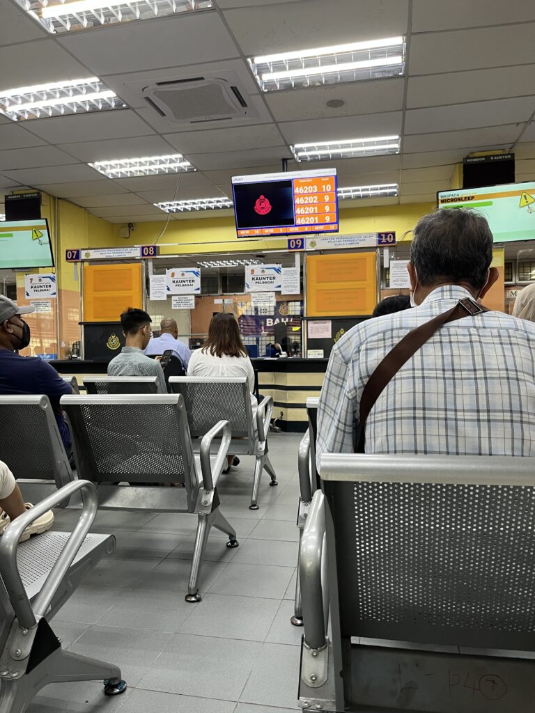 - 番号の呼び出しはマレー語です。マレー語がわからない方でも待合室内に現在の受付番号が表示されるモニターがあるので安心